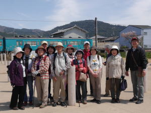 みなさん、足取りも軽やかに!と思いきやアクシデント発生!JRまほろば線は信号機不良で運転見合わせ。運転再開は1時間半後とのこと。バスで桜井まで行く?、電車を待つ?、満員かもしれない?・・・。結局あと5キロ歩いて近鉄田原本駅まで行こう、おしゃべりしながら歩いたらすぐすぐ!最初は意気軒昂です。9キロ歩いた後の5キロ、一時間はやっぱり長かった! でも14キロを歩き終わった達成感でみなさんは笑顔いっぱいでした。今回は思い出に残る最長の歩こう会になりました。みなさん本当にお疲れさまでした!