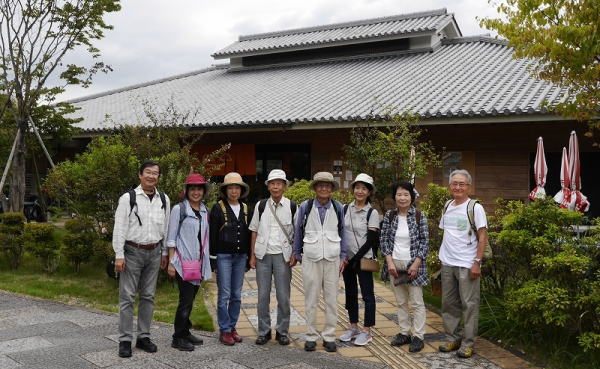 今回は山辺の道、約9キロを8名の仲間で歩きました。天理教本部を経て、石上神宮へ。たくさんの放し飼いの鶏がお出迎えです。その後は道端販売でお買い物を楽しんだり、真っ赤な彼岸花やコスモスなどを鑑賞したりと、ウォーキングが続きます。そしてぴったり正午に竹ノ内環濠集落で昼食。昼食後はみなさんあと2キロで天理トレイルセンター!と励ましながら頑張りました。そのご褒美にトレイルセンターでは楽しいお茶会。もうすぐ終了の気持ちがおしゃべりを弾ませました。記念写真を撮った後はいよいよJR柳本駅まで1キロ強!