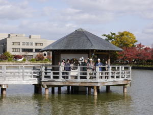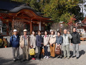 今回も秋晴れのもと9名の参加者で長岡京を歩きました。まずは長岡天満宮へ。鮮やかな紅葉やかわいい幼稚園児との出会いに心が癒されました。