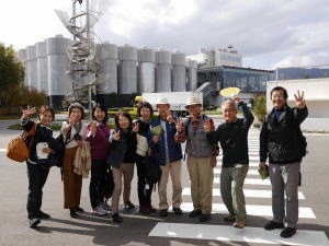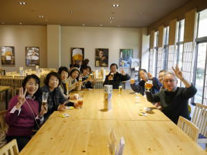 細川ガラシャが新婚時代を過ごしたと言われる勝竜寺城(公園)では、時間を気にしながらの記念撮影と資料館見学。明智光秀が主人公という来年の大河ドラマを先取りしたスポットだっただけにゆっくりできず残念でした。そして恵解山古墳を経てサントリー京都ブルワリーへ。いよいよ今年5回目のビール工場見学です。なが−い見学のあと待ちに待ったビールの試飲。おいしいビールにみなさん笑顔、お腹いっぱいです。