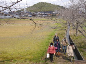 10名プラス1名が参加して地元富雄界隈を歩きました。もともとは京都の北野天満宮予定でしたが新型コロナウイルス対応で人混みを避けたコースになりました。まずは添御縣坐神社(そえのみあがたにいますじんじゃ)を参拝。その後はのどかな田んぼ道や富雄川沿いを経て霊仙寺へ。富雄川ではシラサギやカワウ、カモたちが目を楽しませてくれました。そして昼食はイタリアンレストランのTrattoria