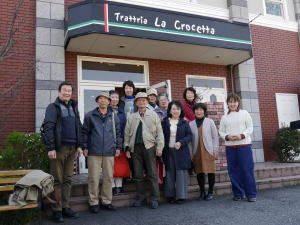 La Crocetta。おいしい料理や楽しいおしゃべりは至福のひととき。おなか一杯になって神武天皇がナガスネヒコを征伐した時に力を貸してくれた「金鵄」を祀る大倭神社や香取大神宮を経て7キロの歩こう会は終了しました。
