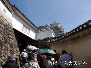 などなど大天守はラッシュさながらの混み具合。それでもいつもよりは少ないそうです。その真っ白い大天守が見られるのはこの何年間だとか。しっかりカメラに収めました。