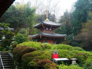そして「あらし吹く み室の山の もみぢばは 竜田の川の 錦なりけり」で有名な三室山へ。頂上には能因法師の五輪塔