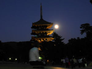 番外編:猿沢の池で「采女祭」があるとのことで有志のご夫婦3組(私たちも)で見物に。池上での行事はまだでしたが興福寺五重の塔から眺める満月は最高でした。三脚があれば!でした。