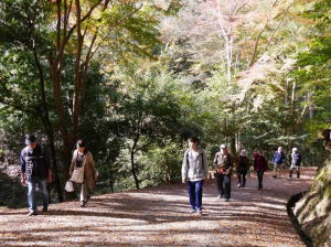 紅葉が美しい遊歩道はなだらかです。登りきったところで昼食。