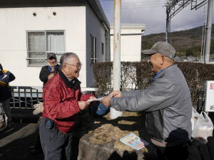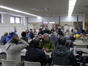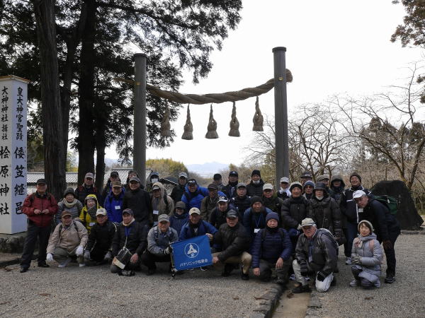 寒かったぁ!わかくさ歩こう会の初例会は山の辺の道の仏教伝来地、大神神社、桧原神社を44名で歩きました。世話役は大和朝倉駅に9時15分集合。10時過ぎ出発まで準備。歩かないだけに寒さが身に応えました。今回はコース担当なので先頭。歩く速度や時間配分、安全確認など気遣いいっぱいのウォーキングです。でもこのコースは4回目。目をつぶっていても・・・(笑) 大神神社での参拝の後、お神酒をいただきます。(勝手に2リットルパックを準備して境内で飲酒。肝心の写真はお酒を注いだりつまみを渡したりですっかり失念。)そして昼食は神社の休憩所で喫食。暖房がよく効いてみなさん大喜び!その後は桧原神社を経てJR巻向駅で解散。最高気温は3℃という今年一番の寒気の中、ほろ酔いウォーキングを堪能しました。